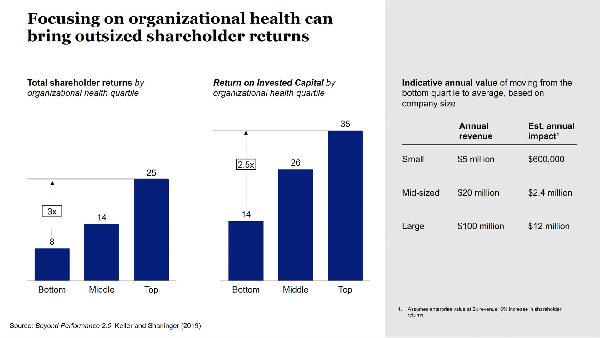 Top teams that drive organizational health perform more than 3X better on shareholder returns than those that don't.We use a step-by-step approach for top teams to get there with confidence.